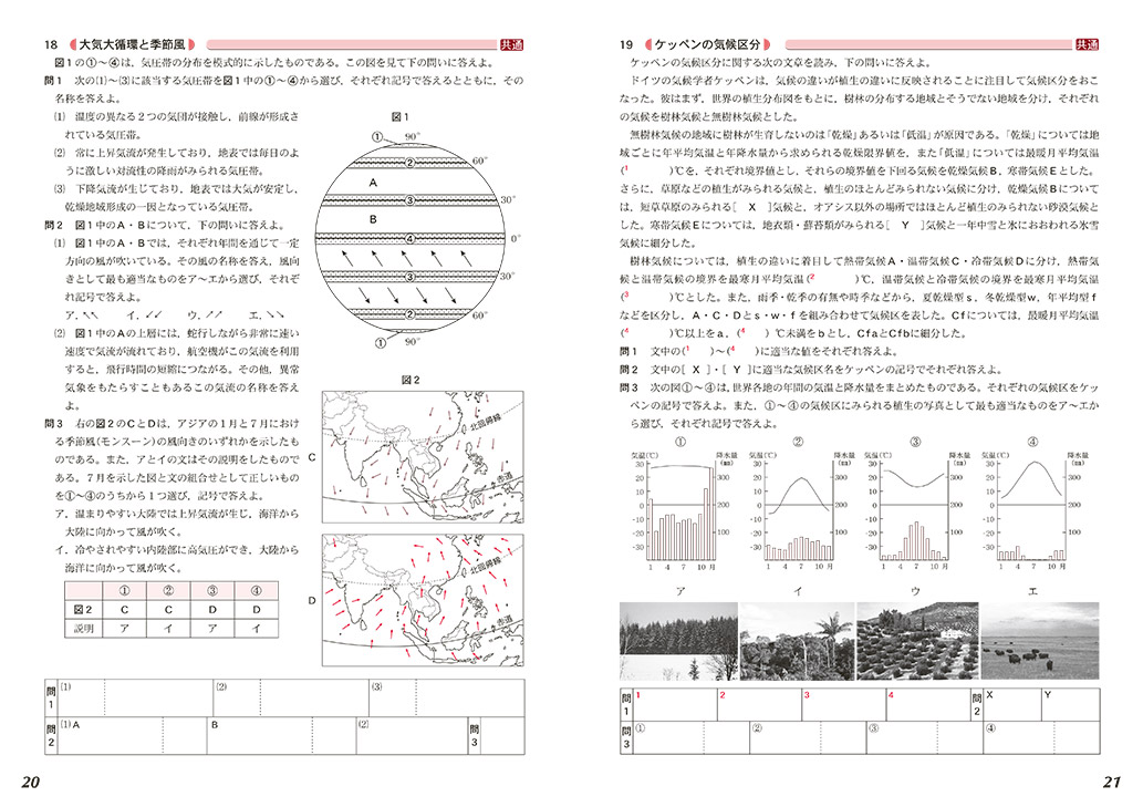 基礎的な問題から統計や地誌に関する知識をベースとした考察力を問う問題まで幅広く収録