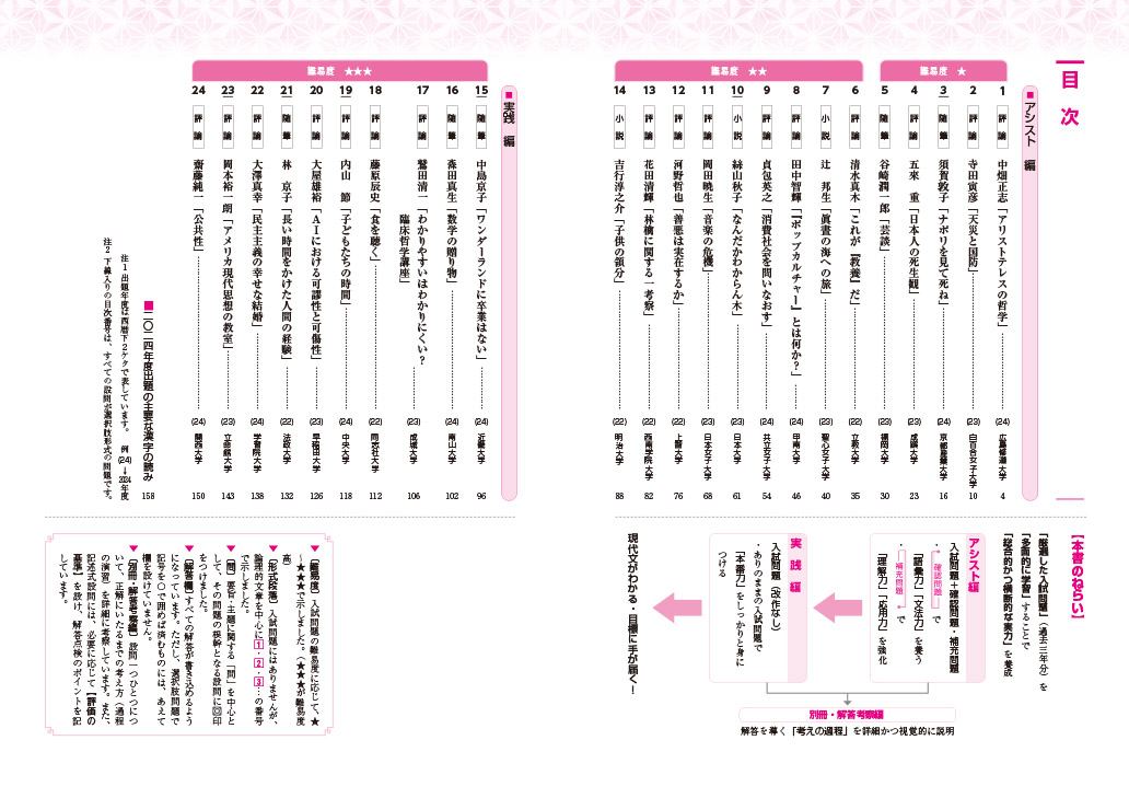 ―「アシスト編」:入試問題に加え、下段に確認問題(語句・文法)・補充問題を用意。この「アシスト問題」で、語彙力や基礎的な読解力を伸ばし、文章への理解を深めることができます。