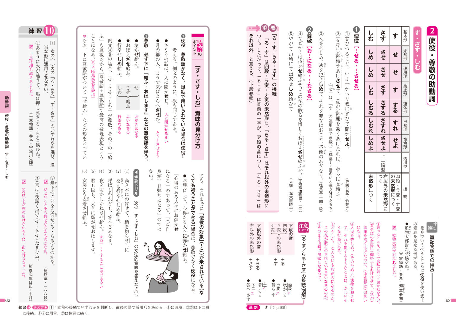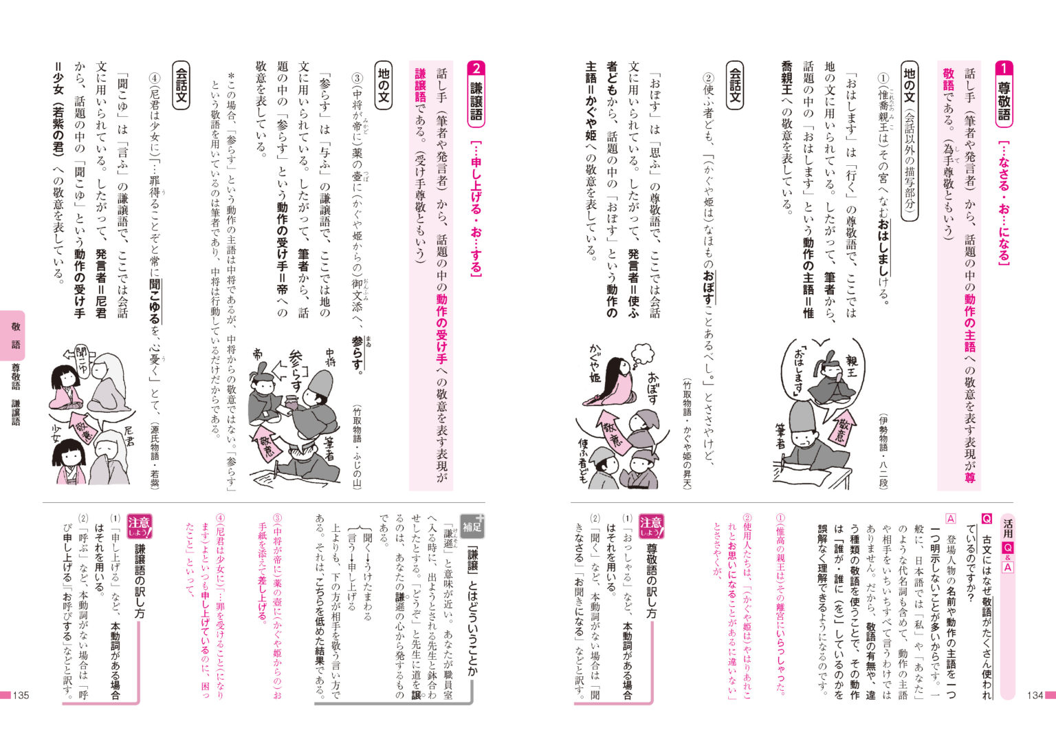 導入は口語文法の敬語から学べる。敬語動詞一覧表を使いやすく改良。「複数の用法をもつ敬語」を充実。「とくに重要な敬語」を新設。さらに、敬語の待遇表現がイラストで理解しやすい!